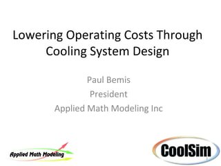 The document discusses the strategies for improving efficiency in data center cooling systems and highlights the significance of Power Utilization Effectiveness (PUE) and Coefficient of Performance (COP) in evaluating cooling performance. It provides a case study on optimizing cooling operations to achieve significant cost savings by implementing techniques such as cold aisle containment and variable frequency drives. Overall, it emphasizes the potential for reducing energy consumption by up to 39%, leading to substantial reductions in operational costs.