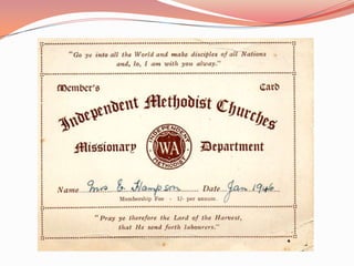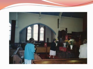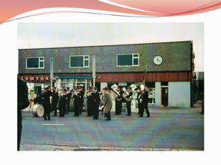 This document provides a brief history of the Lowton Independent Methodist Church in Lowton, England, which has been serving the community since 1720. It summarizes that Wesleyan ministers first held meetings in 1720, a day school and preaching services were opened in 1794, the cause was restarted in 1820 as the Quaker Methodists and later renamed to the Independent Methodists. The document also thanks those who provided photographs for the church's 130th anniversary celebration and provides contact information for others to share photographs for the church's ongoing historical project.