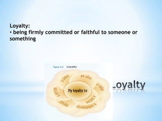 Contending loyalties are loyalties that compete against each other, such as a loyalty to one group competing with a loyalty to another. Conflicts between contending loyalties, such as between family and work commitments, can be difficult to resolve. Canada's policies of cultural pluralism and multiculturalism have helped attract immigrants by encouraging people from various cultures to affirm their unique identities while still integrating into Canadian society.