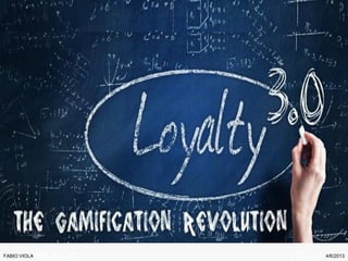 Fabio Viola è un esperto nel campo del gaming digitale e della gamification, con oltre dieci anni di esperienza e più di cento progetti lanciati. Il documento esplora l'evoluzione della gamification e il suo impatto sui programmi di fidelizzazione e sul comportamento degli utenti, evidenziando il rischio di fallimento dei progetti mal progettati. Vengono anche presentati esempi di start-up e iniziative che utilizzano tecniche di gamification per migliorare l'engagement e il comportamento degli utenti nei vari settori.