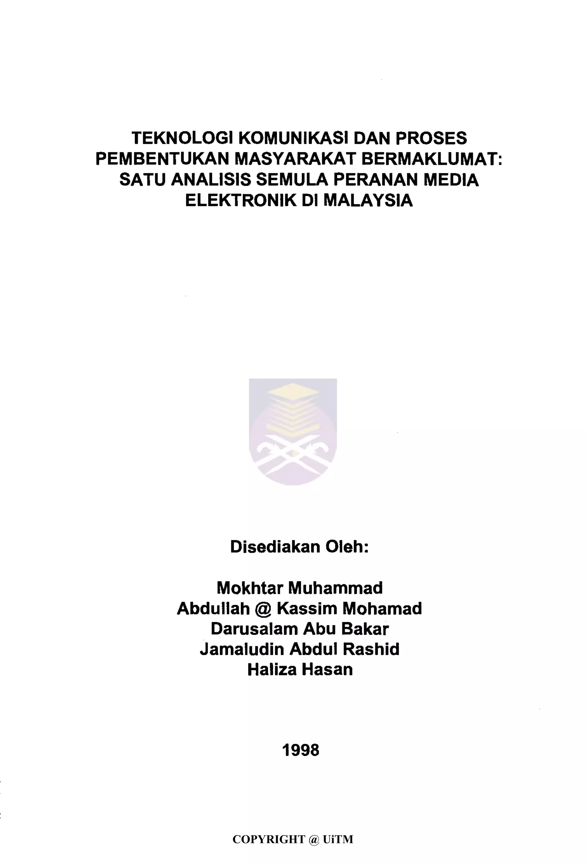 Kajian ini menganalisis peranan media elektronik dalam pembentukan masyarakat bermaklumat di Malaysia, meliputi penggunaan radio, televisyen, dan internet. Hasil kajian menunjukkan televisyen sebagai medium utama yang mempengaruhi pengetahuan dan tingkah laku responden, dengan majoriti mengakui peranan penting media dalam membentuk pandangan mereka. Namun, penggunaan internet dan briteks masih rendah di kalangan responden.