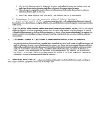 1) The lesson plan is for a kindergarten math lesson on sorting and graphing different colored candy (Smartees).