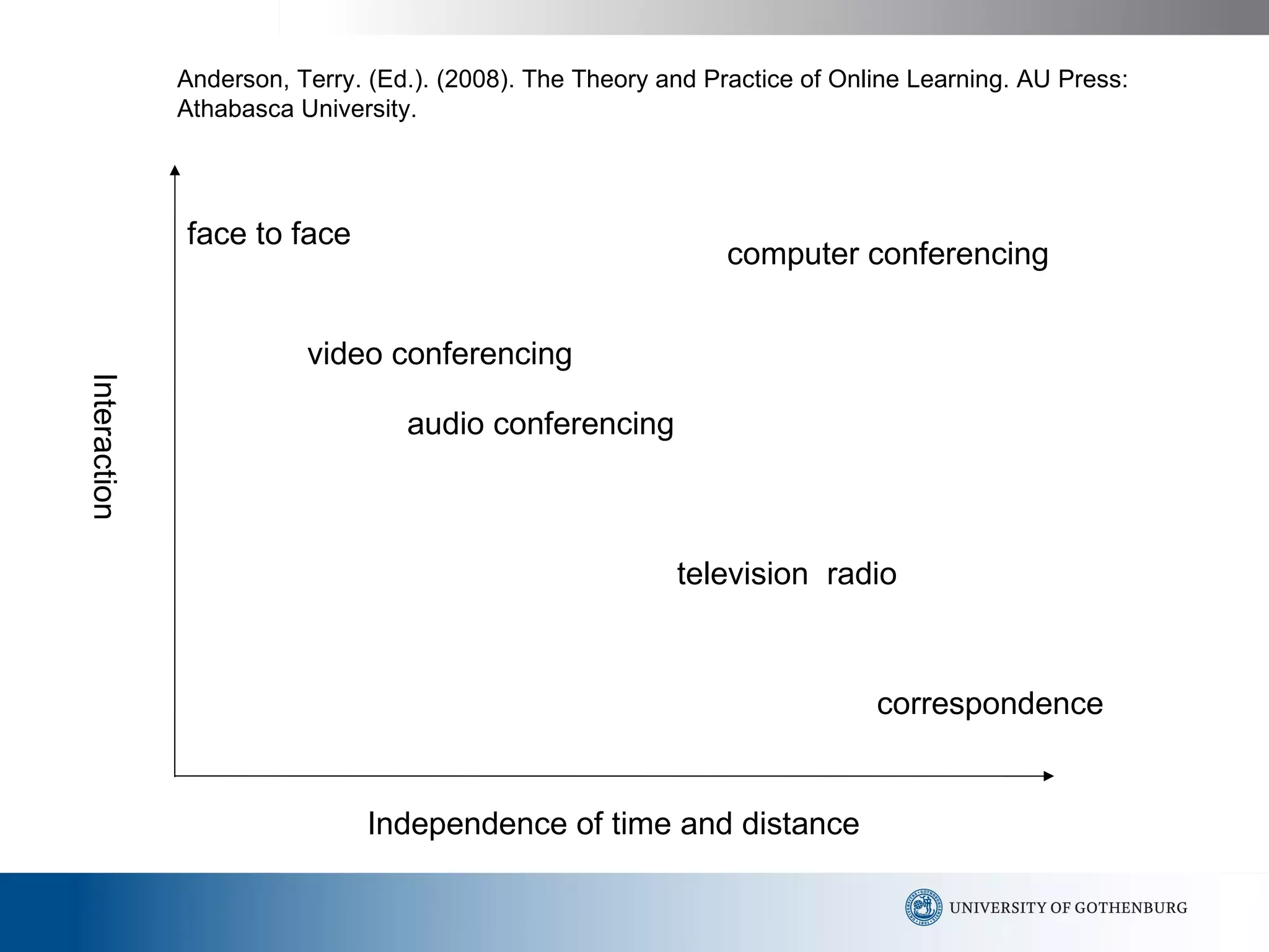 The document discusses key concepts and characteristics of online learning. It covers different types of online learning such as independence of time and distance, interaction through computer conferencing, and participation in online seminars. The document also addresses benefits of online learning such as students having time to reflect on discussions and decreasing communication barriers. Student perspectives on online learning are examined such as feeling a sense of belonging and understanding academic discourse.