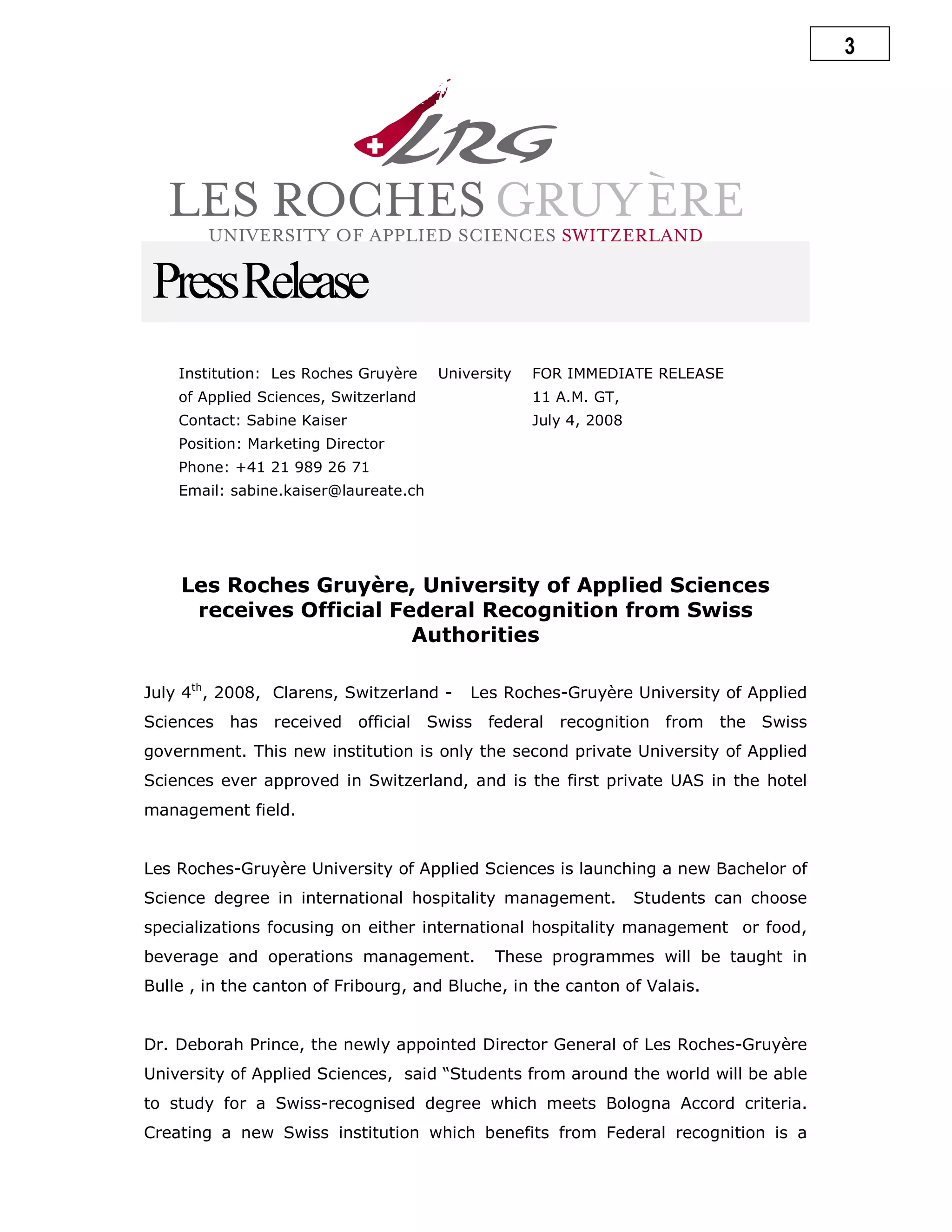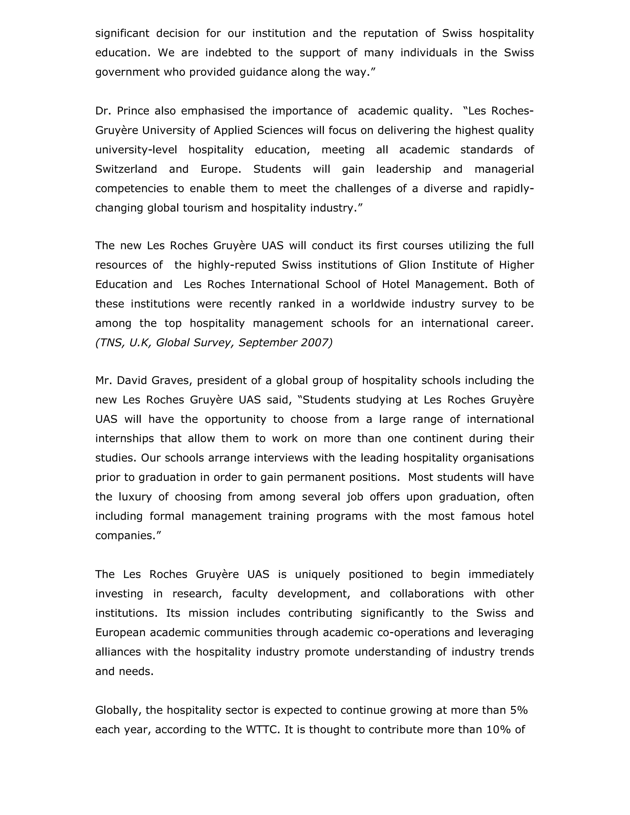 Les Roches Gruyère University of Applied Sciences has received official Swiss federal recognition, becoming the second private university of applied sciences in the country and the first in the hotel management field. The university will offer a new Bachelor of Science degree in International Hospitality Management and aims to provide high-quality education that meets international standards. The institution is well-positioned for growth and plans to invest in research and collaborations to support the expanding hospitality sector.