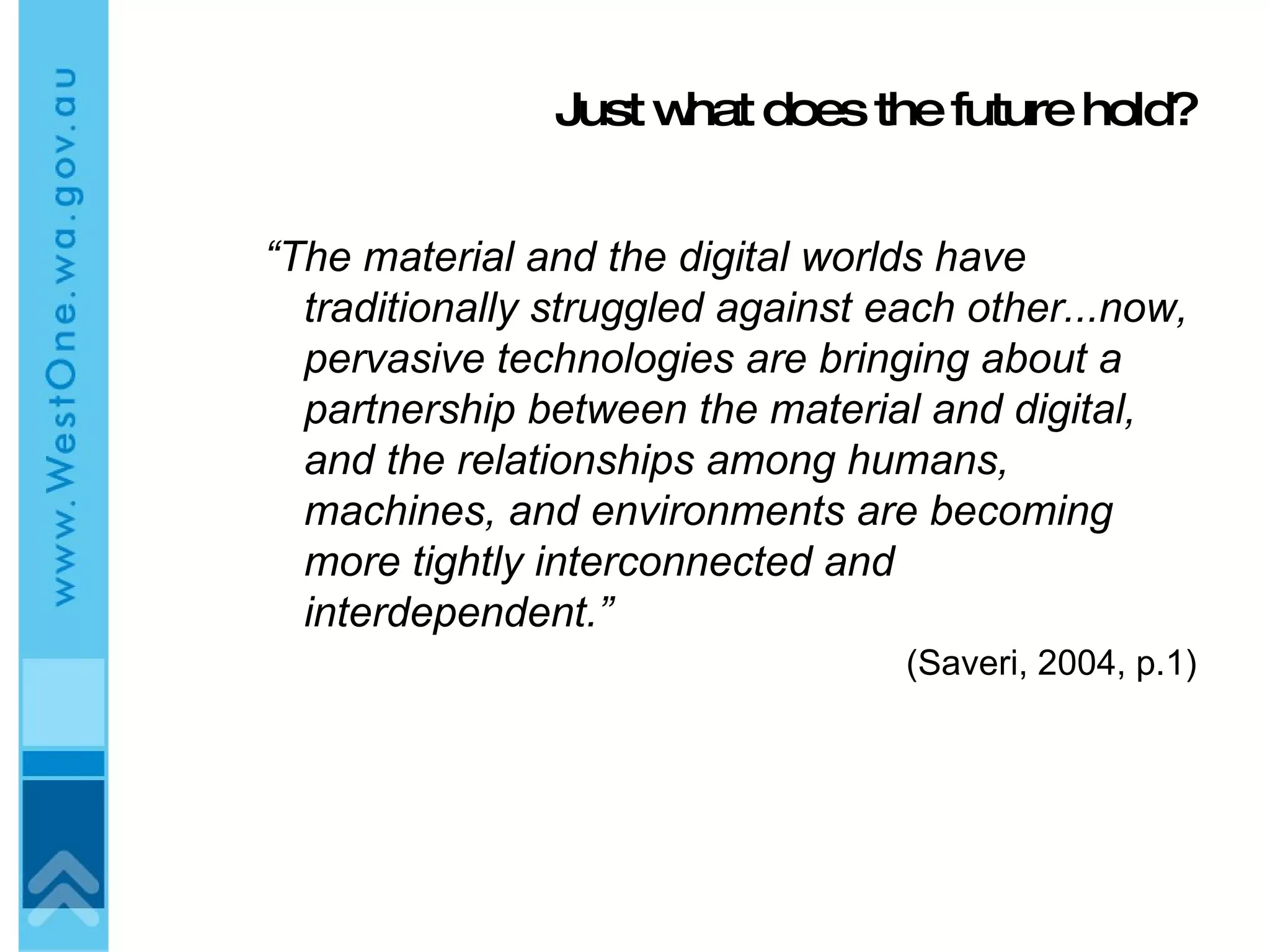 The document discusses how existing web technologies can be combined and adapted to bring the future of ubiquitous connectivity and learning to the present. It suggests mixing technologies like mobile phones, blogs, and online tools to create new learning experiences that take advantage of increased access and mobility. Some example mixes include moblogging with phones and blogs, accessing information on the go with RSS feeds on mobile devices, and using Google Maps in an "Amazing Race" style learning activity. The key themes are leveraging access, mobility, and connectivity to remove boundaries like time and location from learning.