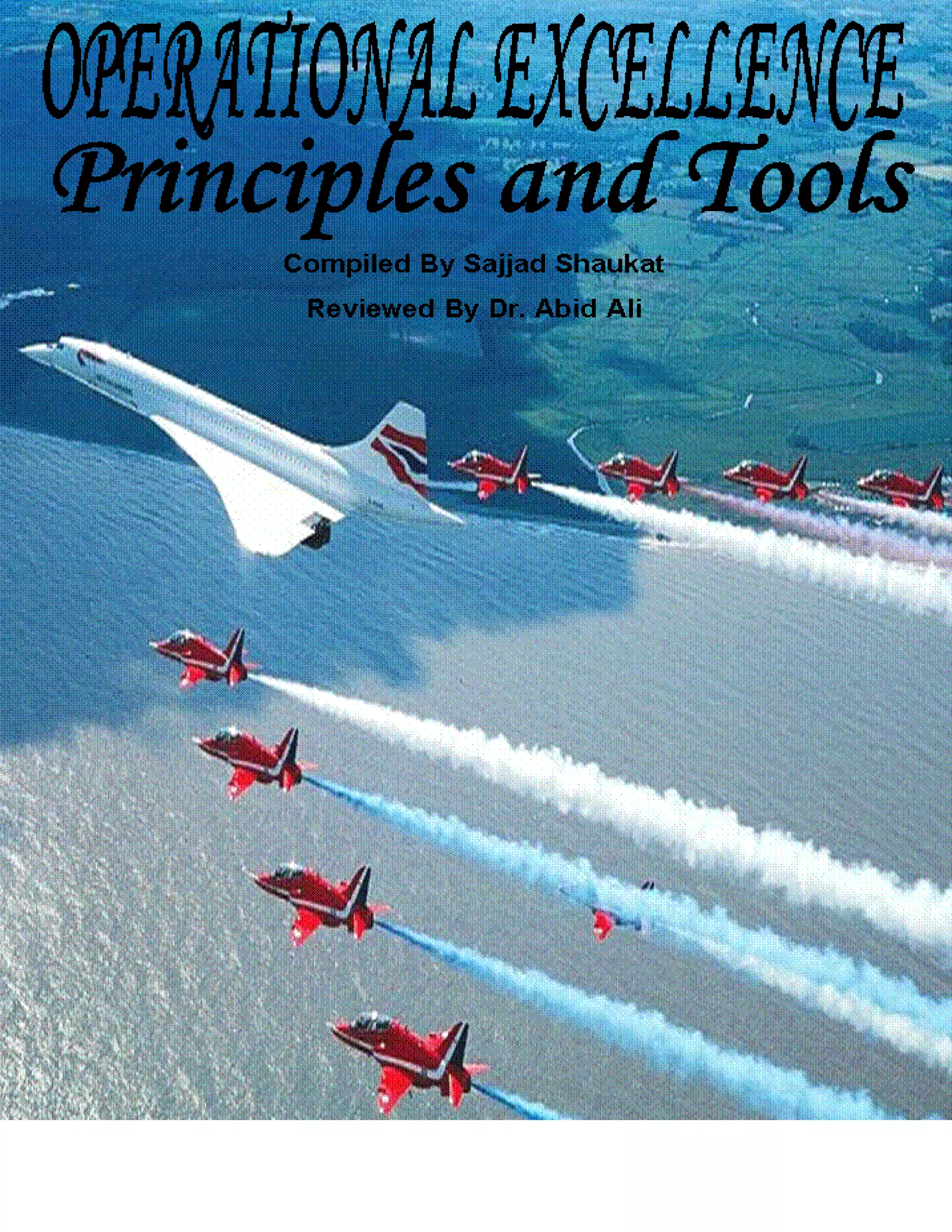 The document discusses operational excellence and provides a guidebook on key principles and tools. It begins by noting the need for organizations to improve productivity and excellence due to competitive pressures. It then discusses how operational excellence combines various theories and methodologies to achieve excellence. The guidebook aims to compile important principles and tools from various sources into a concise desktop reference to help embed an operational excellence philosophy.