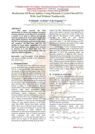 This paper discusses the realization of beam splitters using photonic crystal fibers (PCFs) with optimized structures, focusing on their field distribution and reflection properties through finite difference time domain (FDTD) simulations. Results indicate that variations in refractive indices and lattice constants influence the splitting ratio and signal directionality for both linear and nonlinear cases. The study highlights the potential of hexagonal PCFs in various optical applications, particularly in communications.