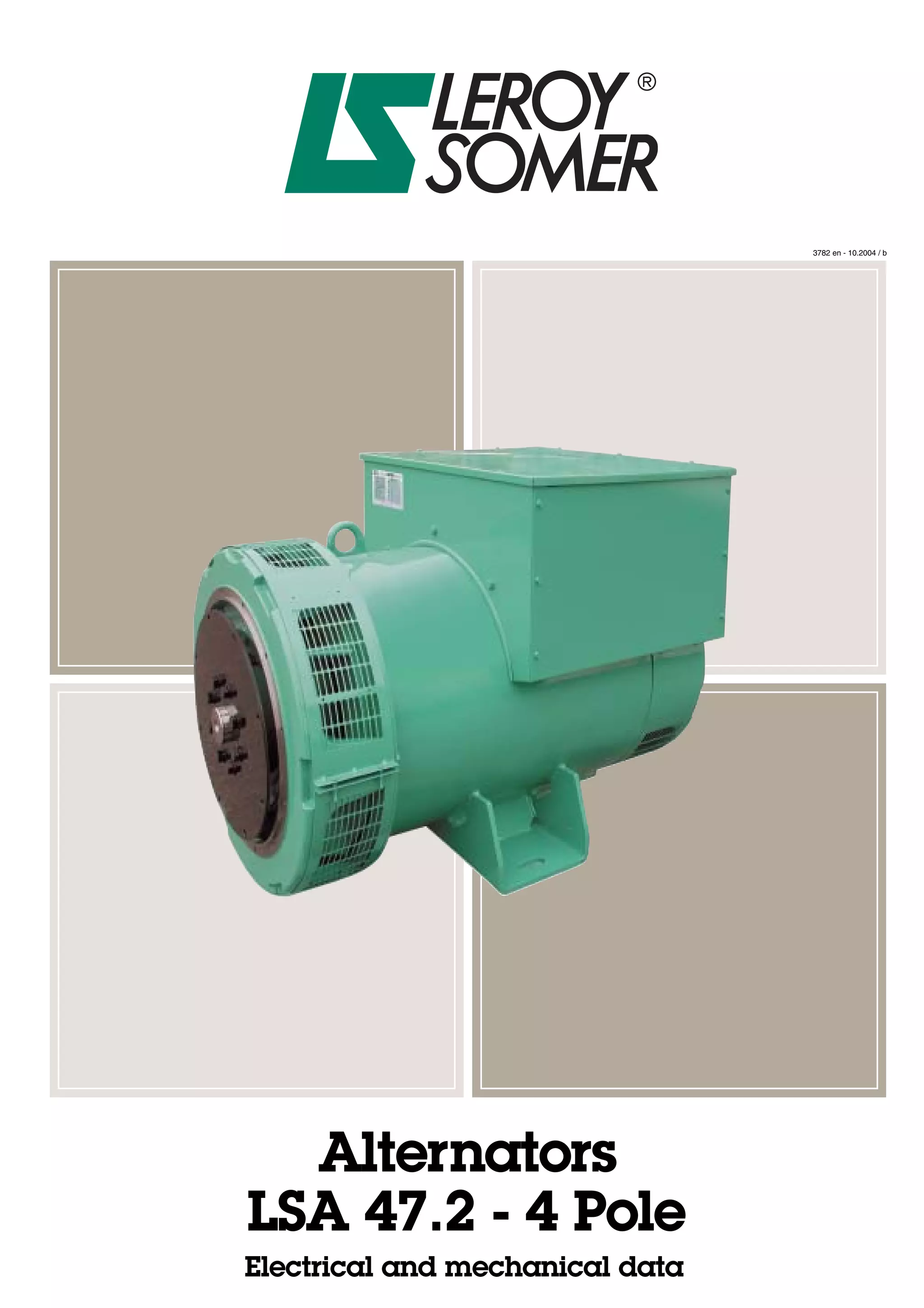 The document provides information on the LSA 47.2 - 4 Pole alternator, including: