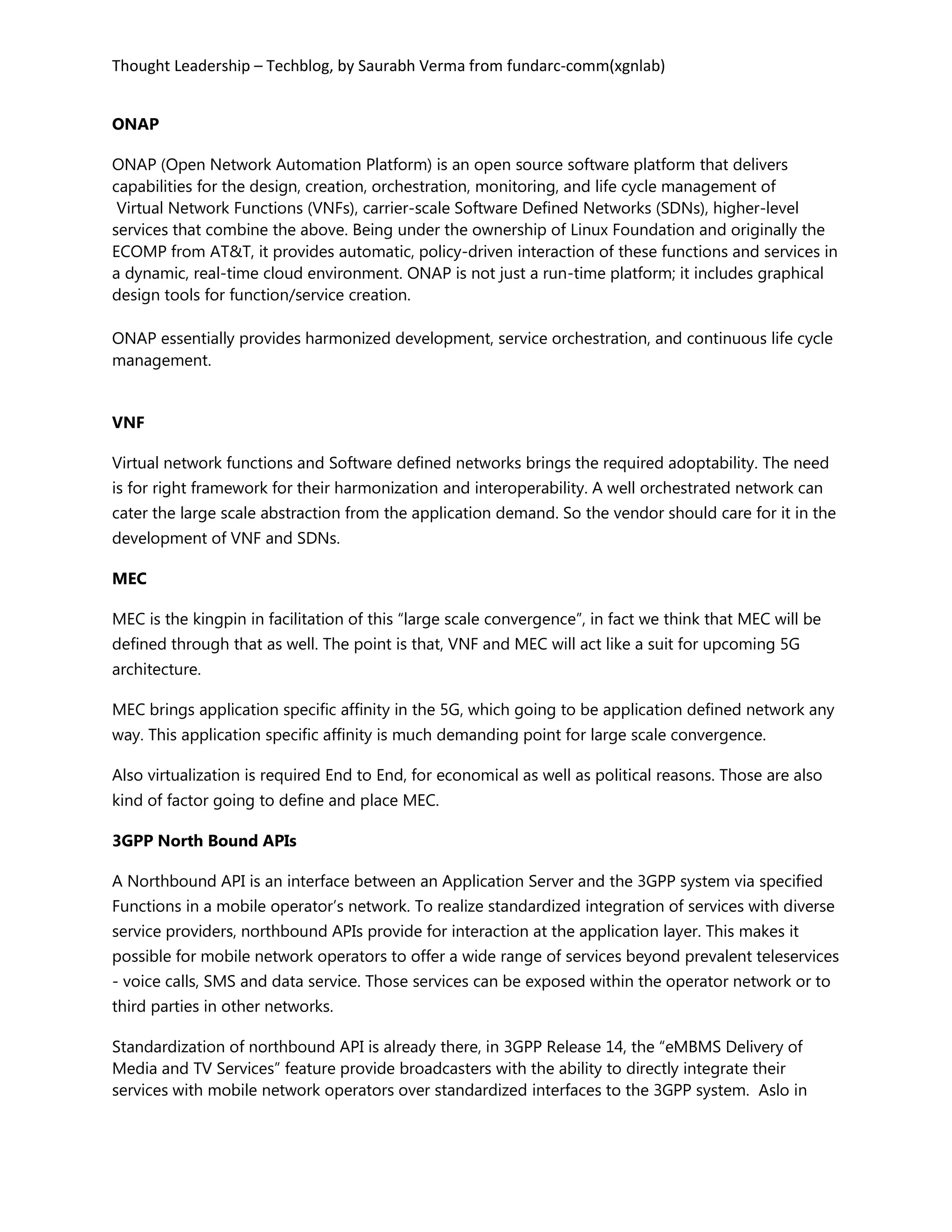 The document discusses the concept of "Large Scale Convergence" or LSC in 5G networks. LSC refers to scaling up performance metrics, spectrum usage, technologies, operations and management in 5G. It will be defined by the convergence of new dimensions and abstractions. Key technologies that enable LSC include ONAP for network automation, MEC for low latency services, VNFs/SDNs for flexibility, and 3GPP North Bound APIs for standardized integration of services. LSC provides a comprehensive framework to deliver application-defined connectivity across heterogeneous networks through abstraction and harmonization across the 5G ecosystem.