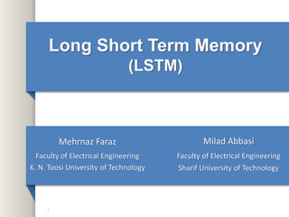 The document provides an overview of Long Short Term Memory (LSTM) networks. It discusses: