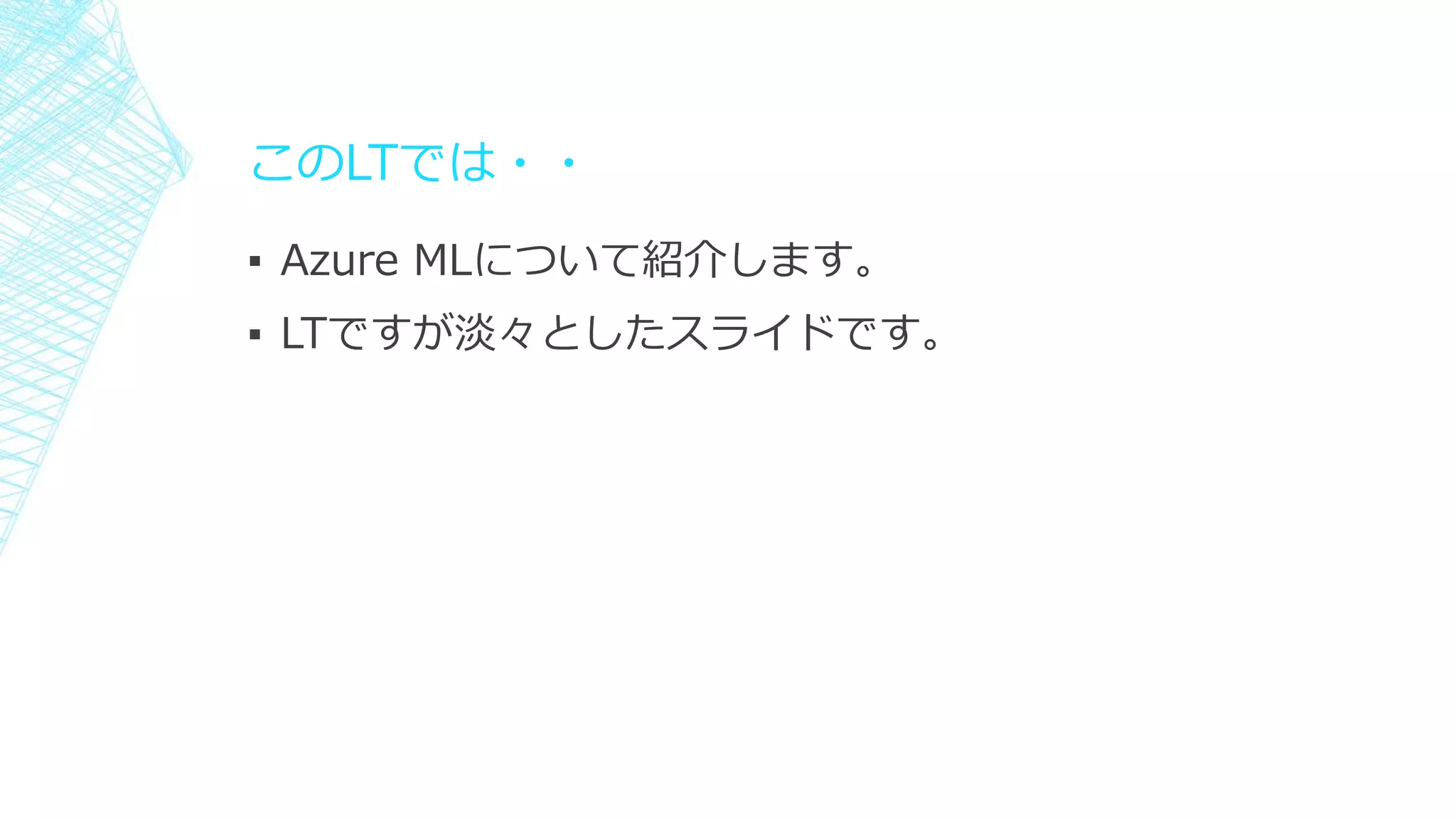 このLTでは・・ ▪ Azure MLについて紹介します。 ▪