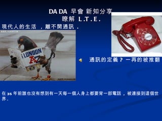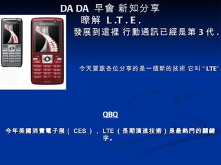 今天要跟各位分享的是一個新的技術 它叫 “ LTE”