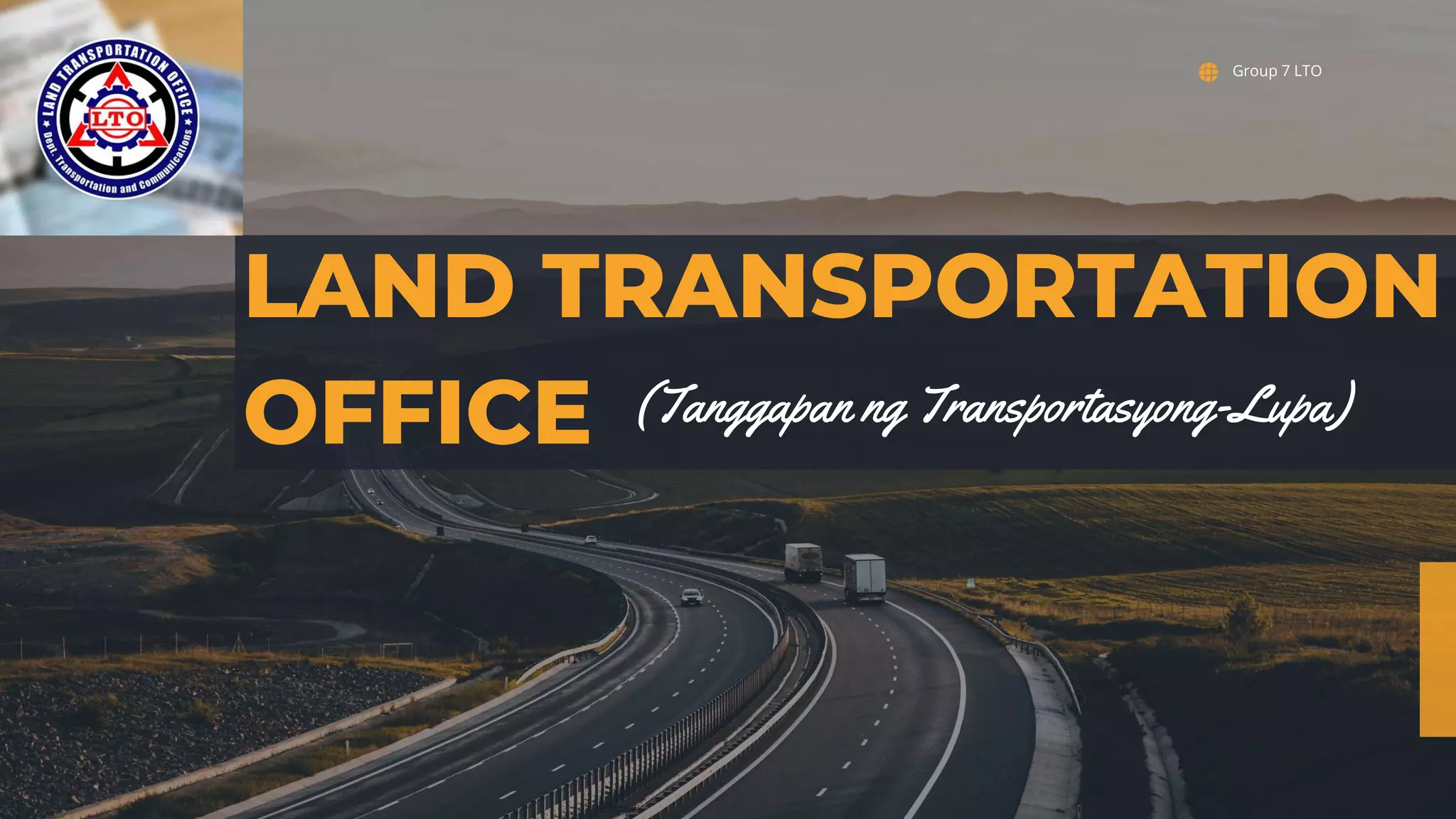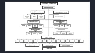 The document summarizes the key functions and history of the Land Transportation Office (LTO) in the Philippines. The LTO is a government agency responsible for land transportation, including vehicle registration and inspection, driver licensing, and enforcement of transportation laws. It was established in 1987 when two previous agencies, the Land Transportation Commission and Bureau of Local Transportation, were abolished. The LTO operates under the Department of Transportation and oversees various functions like registration, licensing, and enforcement to regulate land transportation in the Philippines.