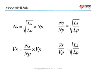 CO. LTD 2015 2 トランスの計算方法 Ls Ns Np Lp Ns Vs Vp Np Ns Ls Np Lp Vs Ls Vp Lp