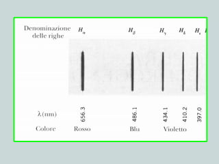 Il documento discute la natura della luce e il suo comportamento sia come onda che come particella. Viene trattata l'interferenza, il principio di Huygens, l'effetto fotoelettrico e vari modelli atomici, con particolare attenzione al modello di Bohr. Inoltre, sono presentate le transizioni energetiche degli elettroni e le righe spettrali associate agli spettri di emissione degli atomi.