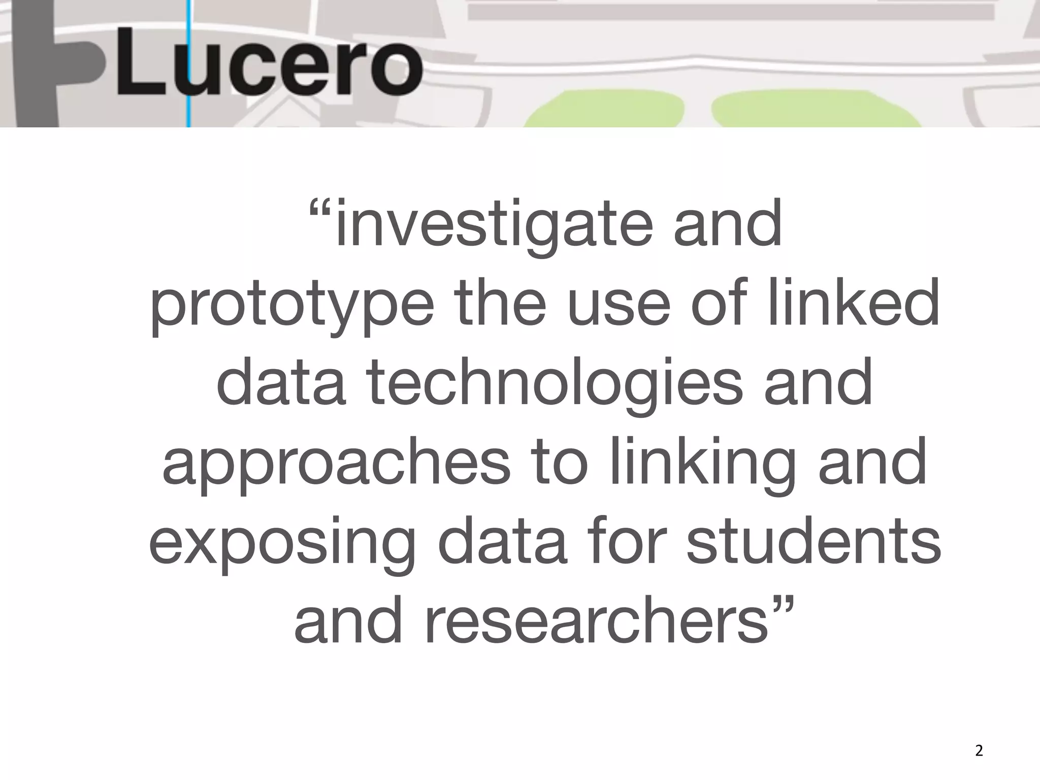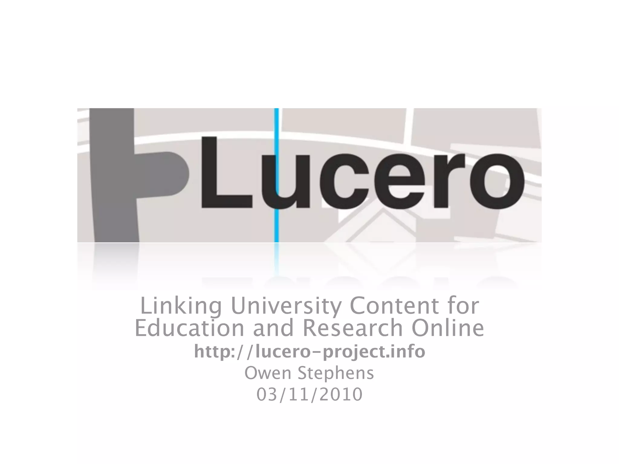 The LUCERO project aims to link and expose university data from the Open University using linked data technologies to make the data more accessible and connectable for students and researchers. The initial work involved exposing two datasets, ORO and podcasts, as linked data and establishing the data.open.ac.uk prototype site. Future plans include linking additional institutional datasets like course descriptions, library catalogues, and research datasets to create a more interconnected web of Open University data.