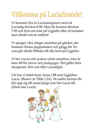 Lucia. (Reserv är Tilde i 2A). De andra barnen får