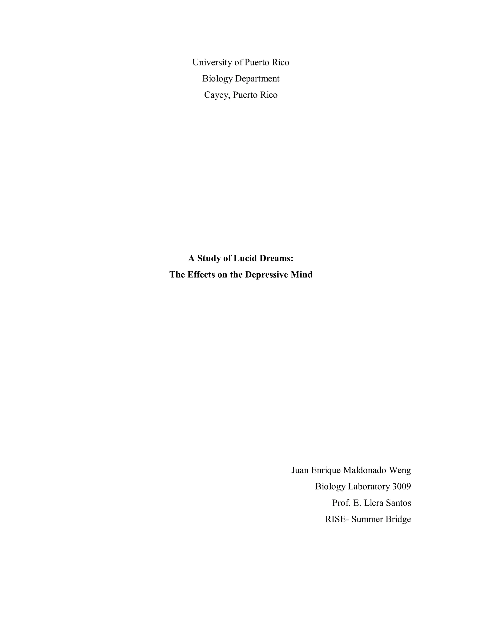 The study aims to examine whether lucid dreaming can help treat depression. Subjects with depression will be divided into four groups. Two groups will receive lucid dreaming training while the other two will not. One group receiving training will also take antidepressants. Subjects will keep dream logs and be evaluated after three months to see if lucid dreaming improved their mood, behavior, and depression symptoms. The researchers hypothesize that by gaining control over dreams through lucidity, subjects can alter nightmares and improve sleep, which may help treat their depression.