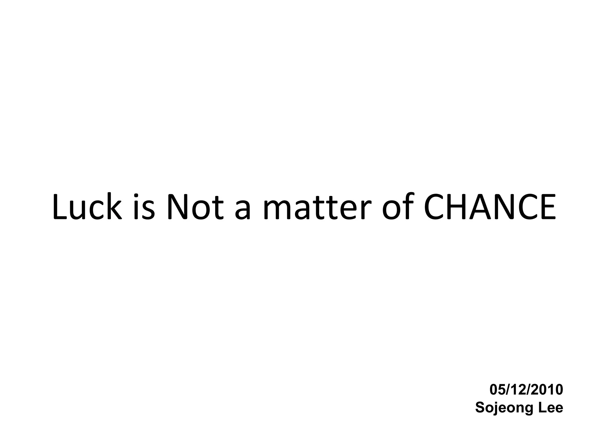 2. Preparation is necessary for luck - without being prepared, opportunities will pass by. Self-suggestion, or positive thinking, also influences luck by improving confidence and guiding conscious and subconscious behavior.