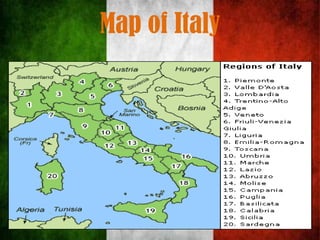 Italy is the fifth most popular tourist destination in the world, attracting around 36.5 million visitors annually. The itinerary outlines a 5-day educational trip to Rome and Pisa, Italy. Day 1 involves visiting the Colosseum in Rome to learn about gladiators and architecture. Day 2 includes the Sistine Chapel and Metropolitan Museum of Art in Vatican City to study famous artworks. Day 3 focuses on the ancient Pantheon building. Day 4 spotlights the famous Trevi Fountain. The final day sees students traveling to Pisa to learn about the leaning Tower. The goal is to teach students about Italy's rich history, art, and architecture.
