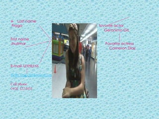This document contains personal information about two individuals, Jhulimar Fraga and Luis Fonso Rodriguez. It lists their names, contact information, nationality, favorite activities, and family members. Personal details provided include email addresses, phone numbers, favorite singers/actors/athletes, hobbies, food preferences, and family relationships.