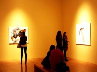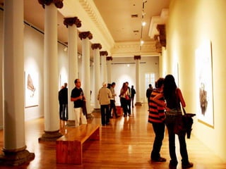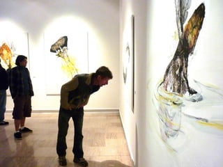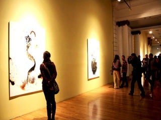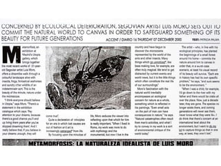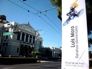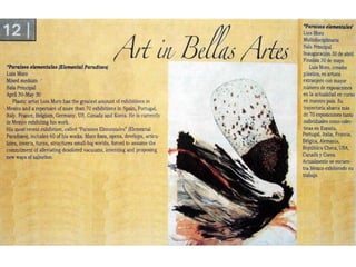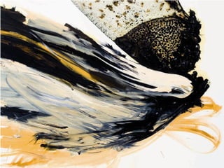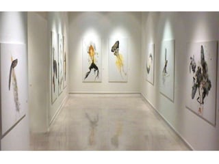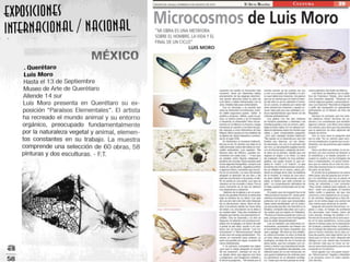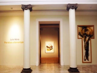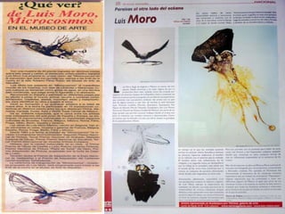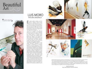 The document discusses Spanish painter Luis Moro and his style of work which draws inspiration from dreams and uses a variety of techniques and materials to create abstract yet figurative pieces. Moro's work has been exhibited widely in galleries and museums across Europe and the Americas and is included in numerous public and private collections. The excerpts provide insight into how various critics and artists view Moro's energetic and expressive paintings.