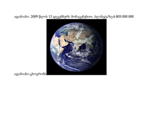 ადამიანი. 2009 წლის12 დეკემბერს მონაცემებით, პლანეტაზე 6 803 000 000