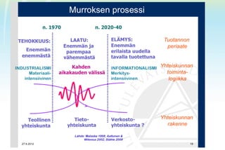 • menetelminä mallintaminen, trendianalyysi, skenaariotekniikka, delfoi