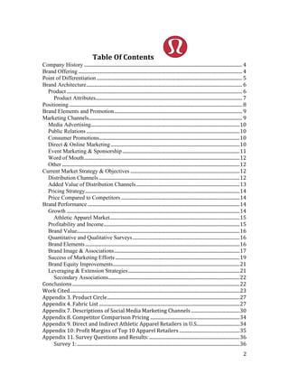 Lululemon is a brand known for high-quality yoga apparel. It differentiates itself by focusing on women and cultivating a sense of community in its stores. The brand has expanded beyond yoga to include other athletic apparel but could better segment its brand architecture. Lululemon uses high-performance fabrics and emphasizes function, style, and customer service. It positions itself as a luxury activewear brand and communicates its brand through elements like its logo and reusable shopping bags promoting wellness messages. The brand relies more on interactive marketing like in-store classes than traditional advertising.