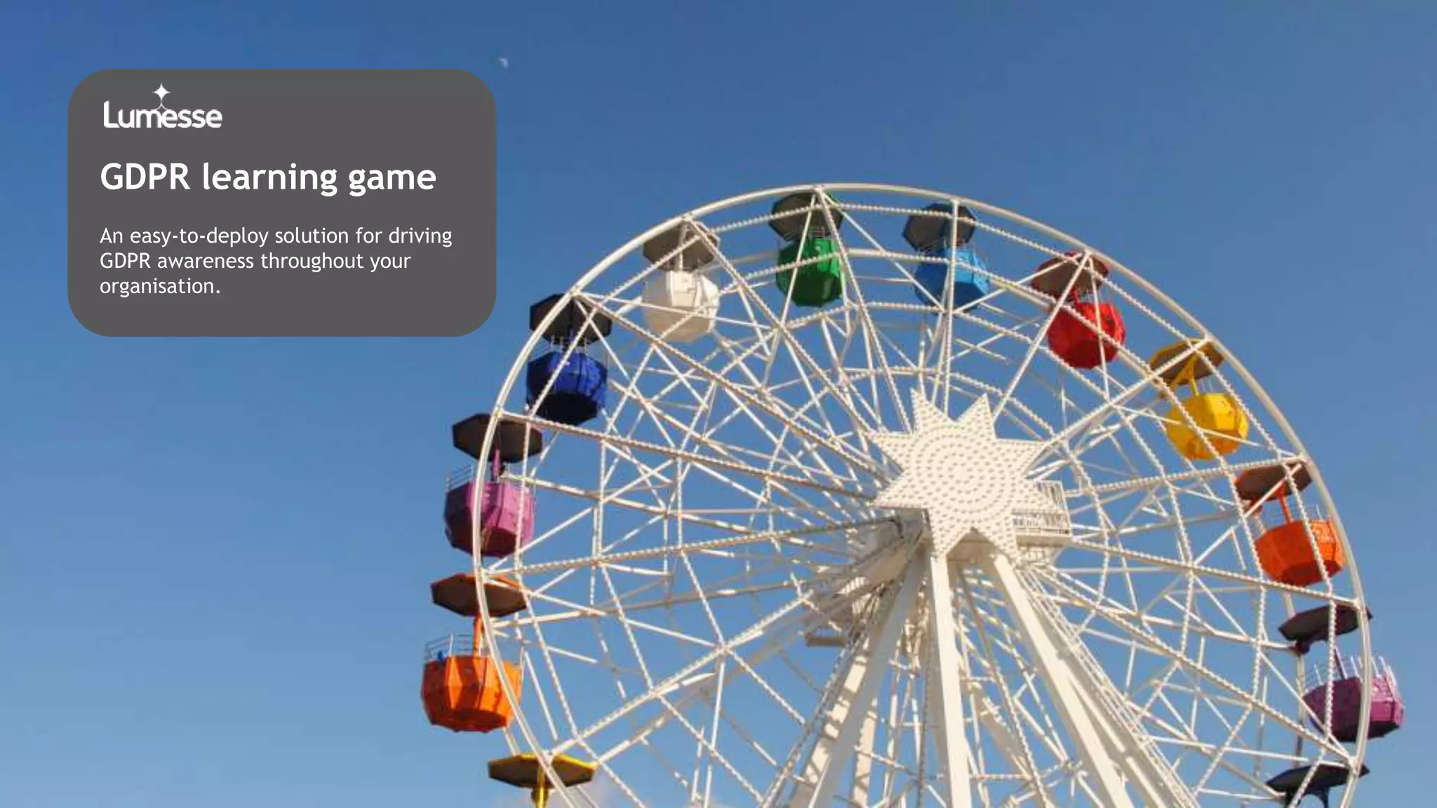 This document describes a GDPR learning game that can be deployed by organizations to drive GDPR awareness. The game takes 20 minutes to complete and places GDPR content into a familiar board game structure. It combines learning and testing to introduce key GDPR concepts and principles in an engaging way. Developing the customized game takes about 8 weeks. The game helps ensure all staff understand personal data protection under GDPR and provides evidence of training to regulators.