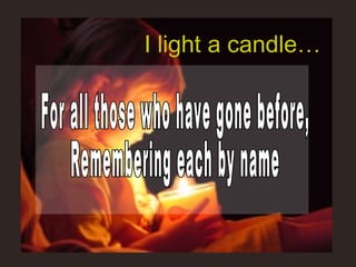 The document lists the names of many people who are being remembered or honored for their fight against cancer or for being victims of cancer. It includes short quotes about facing adversity and never giving up the fight. Candles are being lit to remember those who have passed, honor survivors, and pray for a cure to the disease.