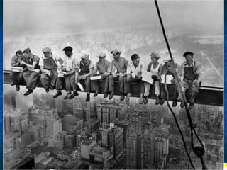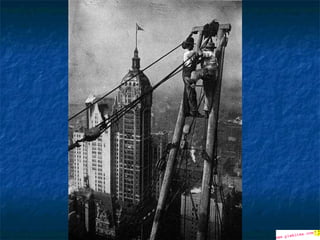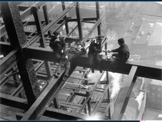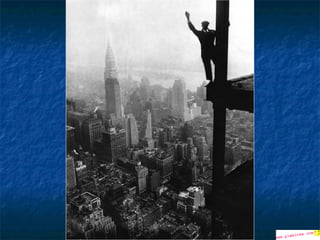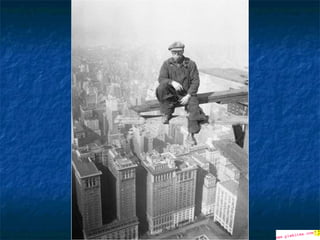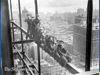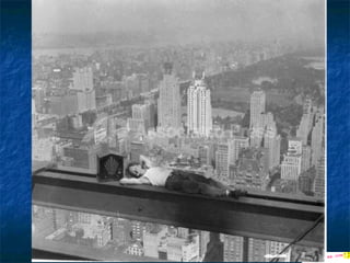 Οι φωτογραφίες σεαυτήν την παρουσίαση, είναι πραγματικές. Μερικές απ' αυτές είναι ιστορικές φωτογραφίες και τραβήχτηκαν από τον Charles Ebbets στην αρχή της δεκαετίας του '30. οι περισσότερες από αυτές απεικονίζουν τις καθημερινές σκηνές των εργαζομένων που συμμετείχαν στην κατασκευή των ουρανοξυστών μεταξύ 1920 και 1935. Όπως θα δείτε, τα μέτρα ασφαλείας ήταν κάπως ασυνήθιστα και οι φωτογραφίες που τραβήχτηκαν προσπάθησαν να παρουσιάσουν εκείνη την κατάσταση .