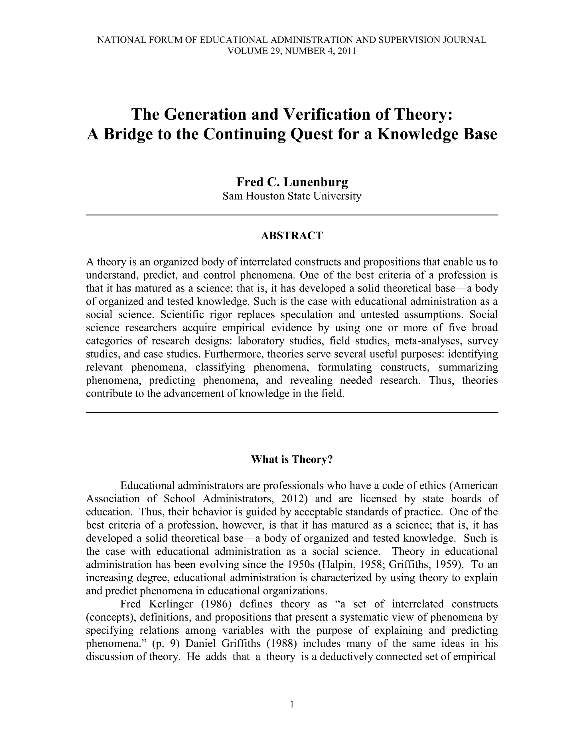 The document discusses the development and significance of theories in educational administration, emphasizing their roles in understanding, predicting, and controlling educational phenomena. It explains various research designs used in social sciences, highlighting the connection between theory and research. The document also outlines the functions of theories, including identifying relevant phenomena, formulating constructs, and revealing areas for further research.