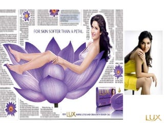 HUL is India's largest FMCG company touching 2 out of 3 Indian consumers. It has a wide product mix of 20 categories including home and personal care products and food and beverages. Lux soap was launched in India in 1929 and over the years has been positioned as the beauty soap of stars and common girls aged 16-35 from middle income groups. HUL has a strong distribution network reaching over 1 million retail outlets across India using its IT-powered RSNet system. Lux soap comes in various variants with different fragrances and packaging sizes and is promoted through celebrity endorsements.