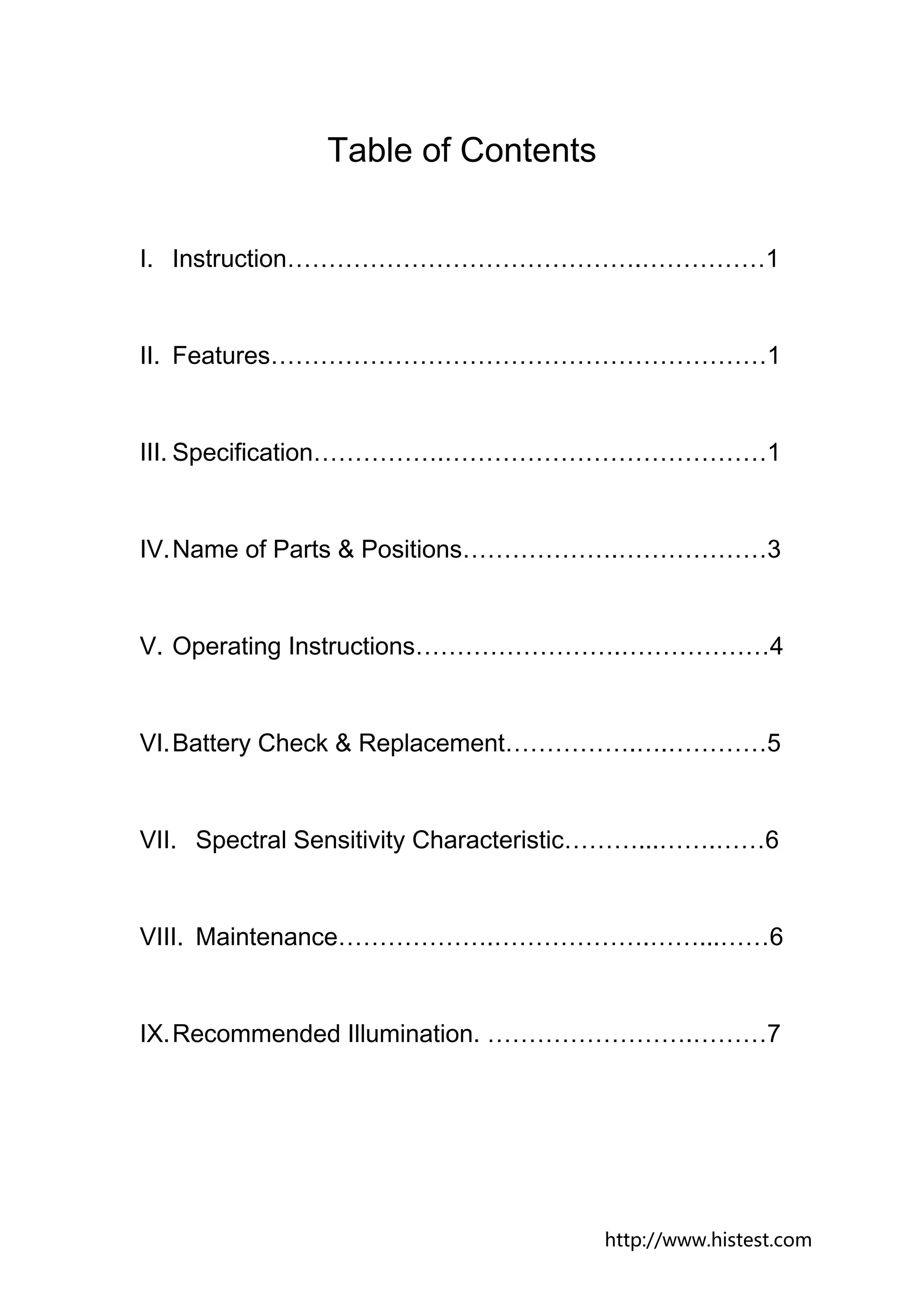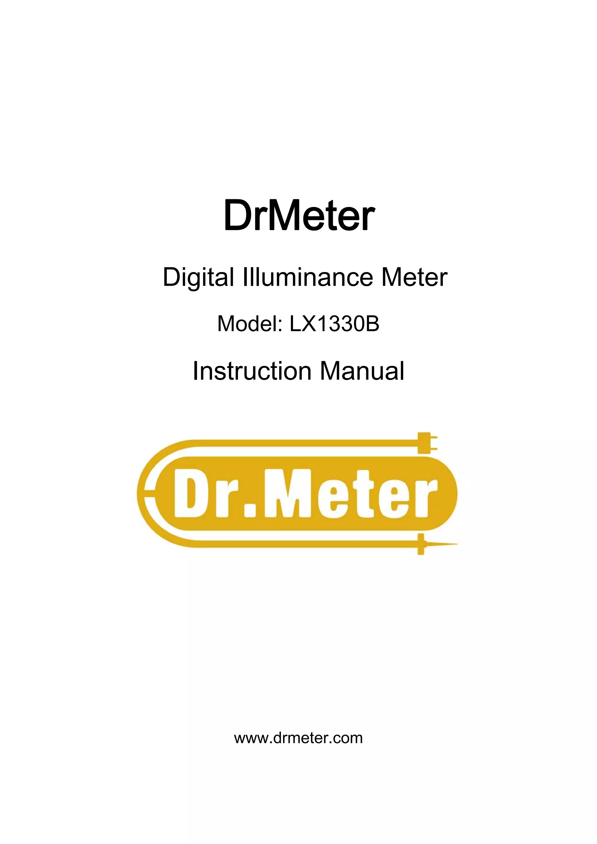 The document is an instruction manual for the DrMeter Digital Illuminance Meter. It describes the meter's features such as measuring light levels from 0.1 to 200,000 lux and units of lux and foot-candles. It provides details on operating instructions, maintenance, and recommended light levels for different environments like offices, factories, and hospitals.