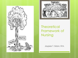 Lydia Hall developed a nursing theory that conceptualized nursing care into three overlapping circles: care, core, and cure. The care circle focuses on nurturing and comforting patients. The core circle emphasizes meeting patients' social, emotional, and intellectual needs to help them understand themselves and solve problems. The cure circle involves applying medical knowledge and cooperating with doctors and families on patients' medical, surgical, and rehabilitative needs. Hall believed all three aspects interact and change based on patients' individual, health, environmental, and nursing needs, with the overall emphasis being on caring for the whole person. The theory focused heavily on the care and core roles of nurses with limited discussion of other nursing roles.