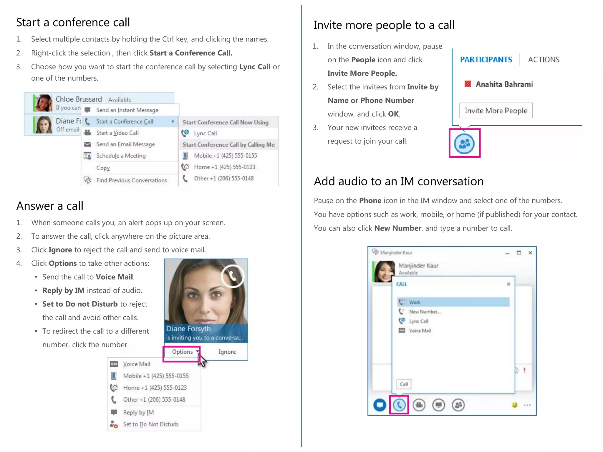 1. Set up audio devices and control audio calls by putting calls on hold, muting, and transferring.