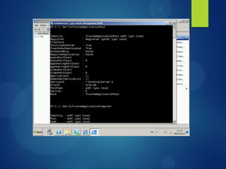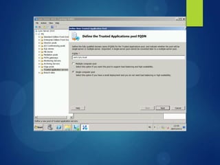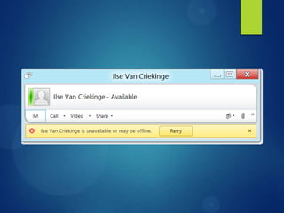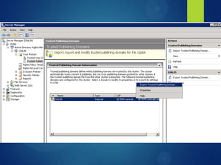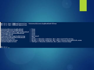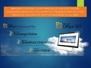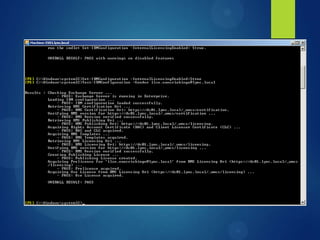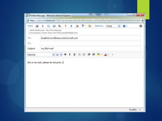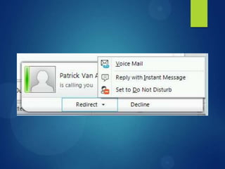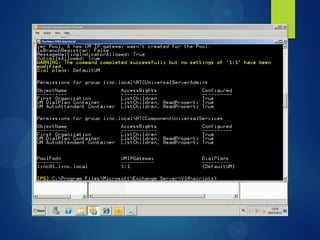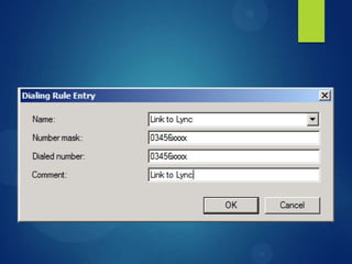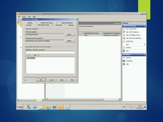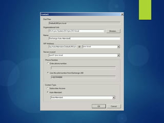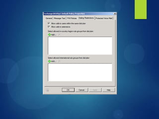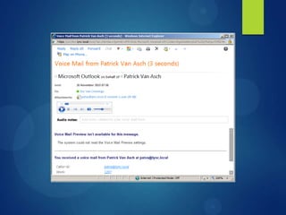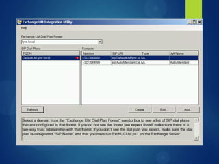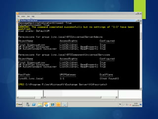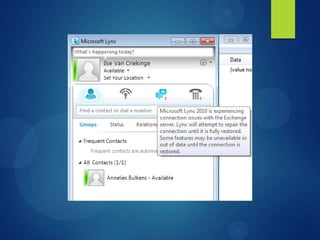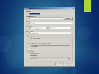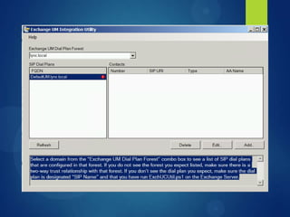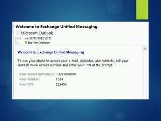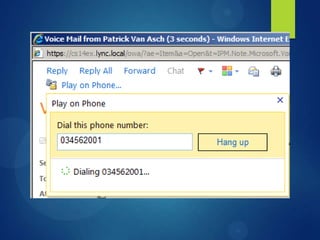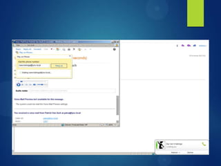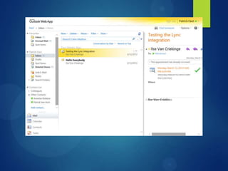 Unified Communications and Collaboration: Lync'ing IT All Together discusses how Microsoft products like Exchange, SharePoint, and Lync can be integrated to provide unified communications and collaboration capabilities. The document outlines how Exchange can be integrated with Rights Management to help protect sensitive data. It also describes how SharePoint and Lync can be configured for presence integration and skill search. Exchange can be set up for integration with Lync for features like unified messaging and playback of voice mails. Bringing these products together through configuration and integration provides users with a seamless experience across communications and collaboration tools.