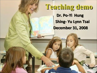 This document provides a lesson plan for a teaching demo on English grammar focusing on separable verbs. The plan includes warm-up activities using an article on family, an introduction to separable verbs distinguishing them from inseparable verbs, handouts defining separable verbs and examples, an exercise underlining separable verbs in the article and asking peers about the meanings, and an assignment for students to make sentences and memorize the separable verbs. Assessment will include participation, assignments, a quiz, and memorizing the separable verbs and their meanings.