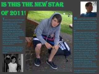 This article features an exclusive interview with up-and-coming artist Taylor T, who they describe as a potential new star of 2011. In the interview, Taylor discusses his admiration for Michael Jackson as an idol, and says he would love to duet with Trey Songz or Rihanna. He also shares that his debut single will be released in two weeks and he will embark on a tour next year. Taylor expresses his goal of winning a Brit Award for Best New Artist. At just 17 years old, Taylor has found sudden success in beating other top artists in the charts after being scouted while busking at age 14.