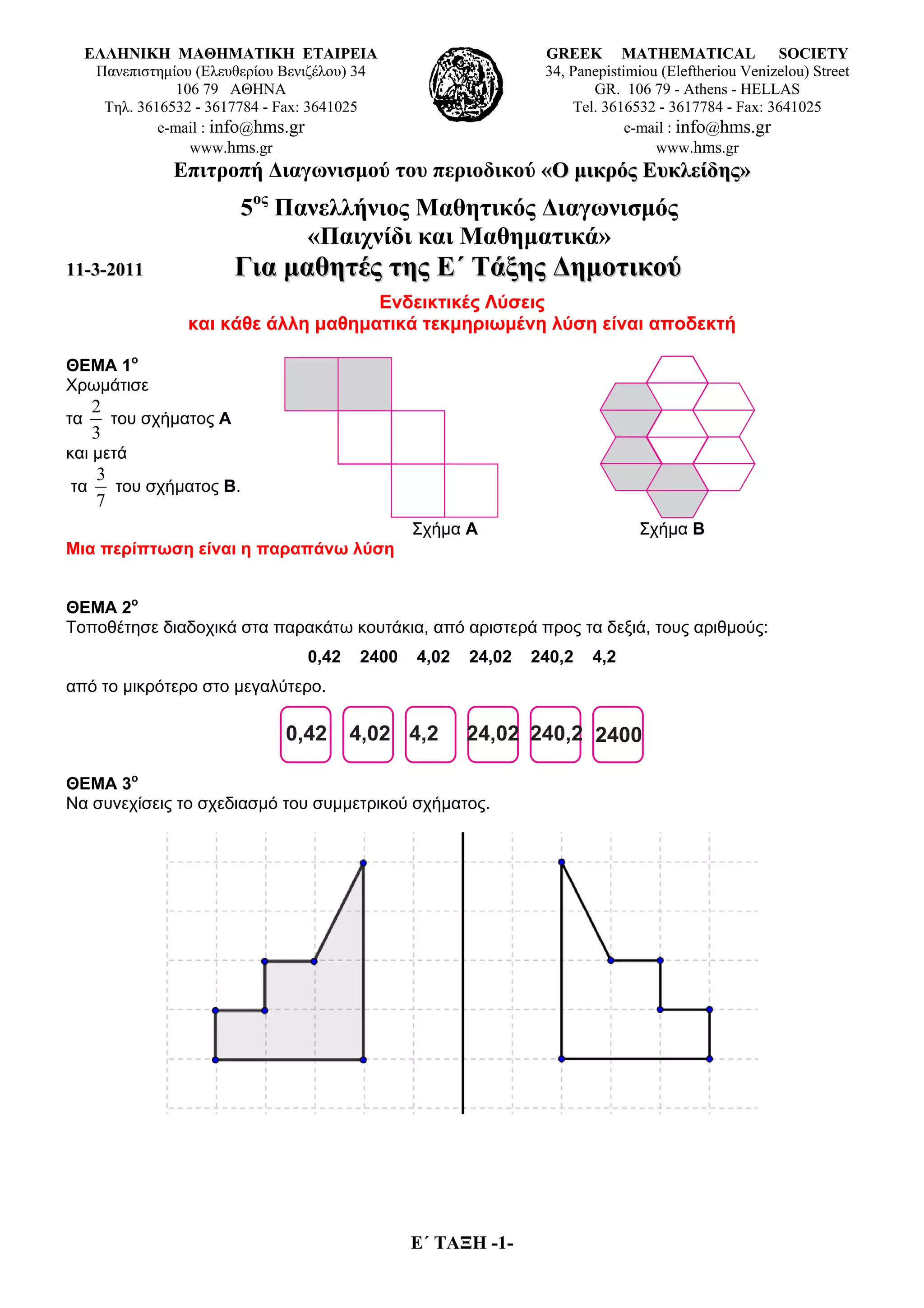 1111--33--22001111 ΓΓιιαα μμααθθηηττέέςς ττηηςς ΕΕ΄΄ ΤΤάάξξηηςς ΔΔηημμοοττιικκοούύ