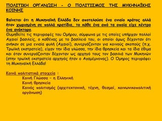 ΠΟΛΙΤΙΚΗ ΟΡΓΑΝΩΣΗ -Ο ΠΟΛΙΤΙΣΜΟΣ ΤΗΣ ΜΥΚΗΝΑΪΚΗΣ