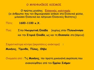 Ο ΜΥΚΗΝΑΪΚΟΣ ΚΟΣΜΟΣ