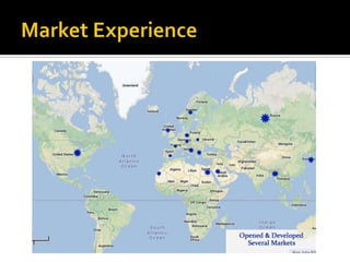 The document outlines the professional profile of a 28-year-old sales and marketing expert from Egypt with experience across various industries, including luxury goods, civil engineering, and agriculture. Key roles have included export specialist and senior sales manager, contributing to significant revenue growth and market penetration strategies. The individual holds a BSc in Computer Science and has undergone relevant training in export marketing and strategic sales planning.