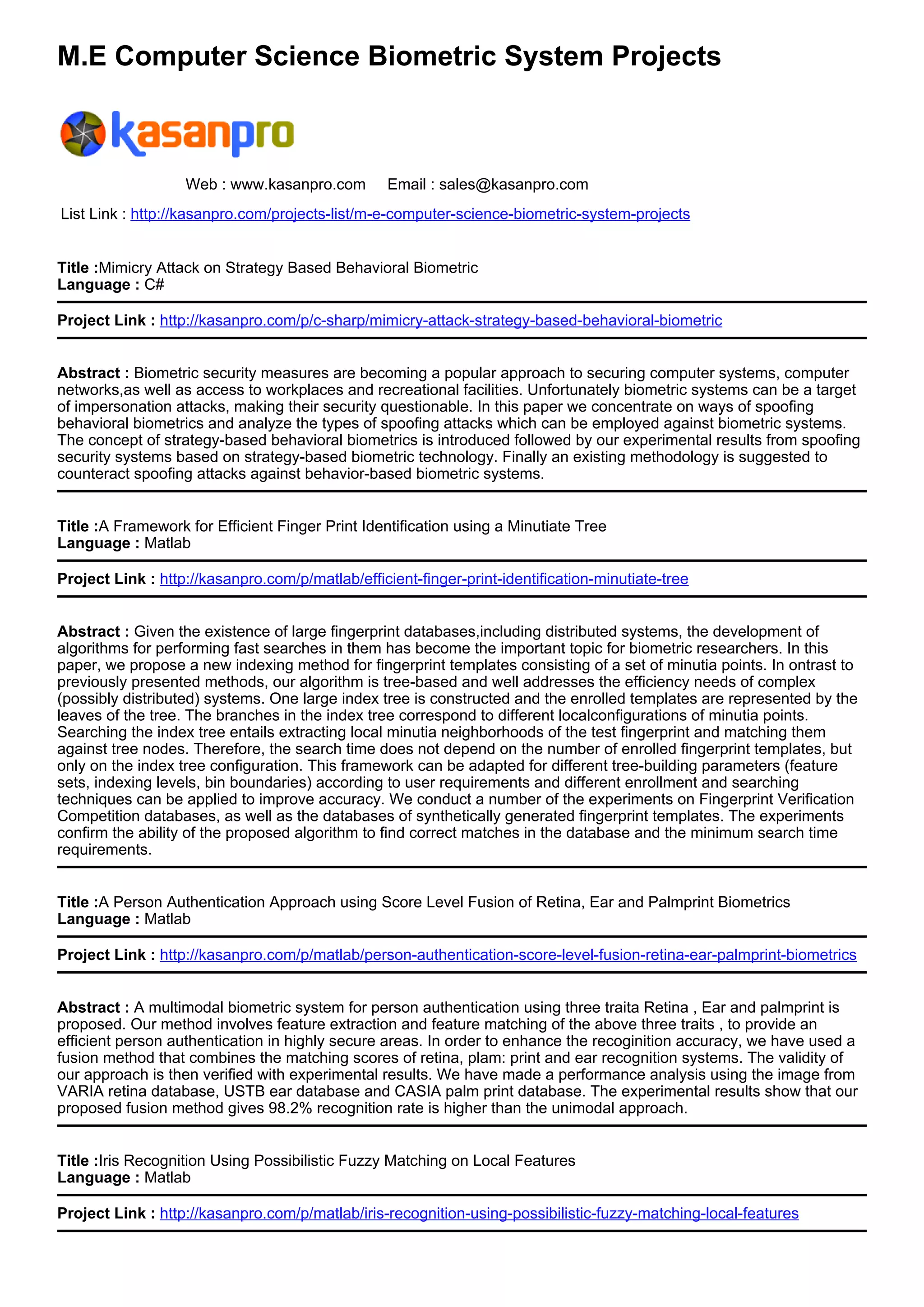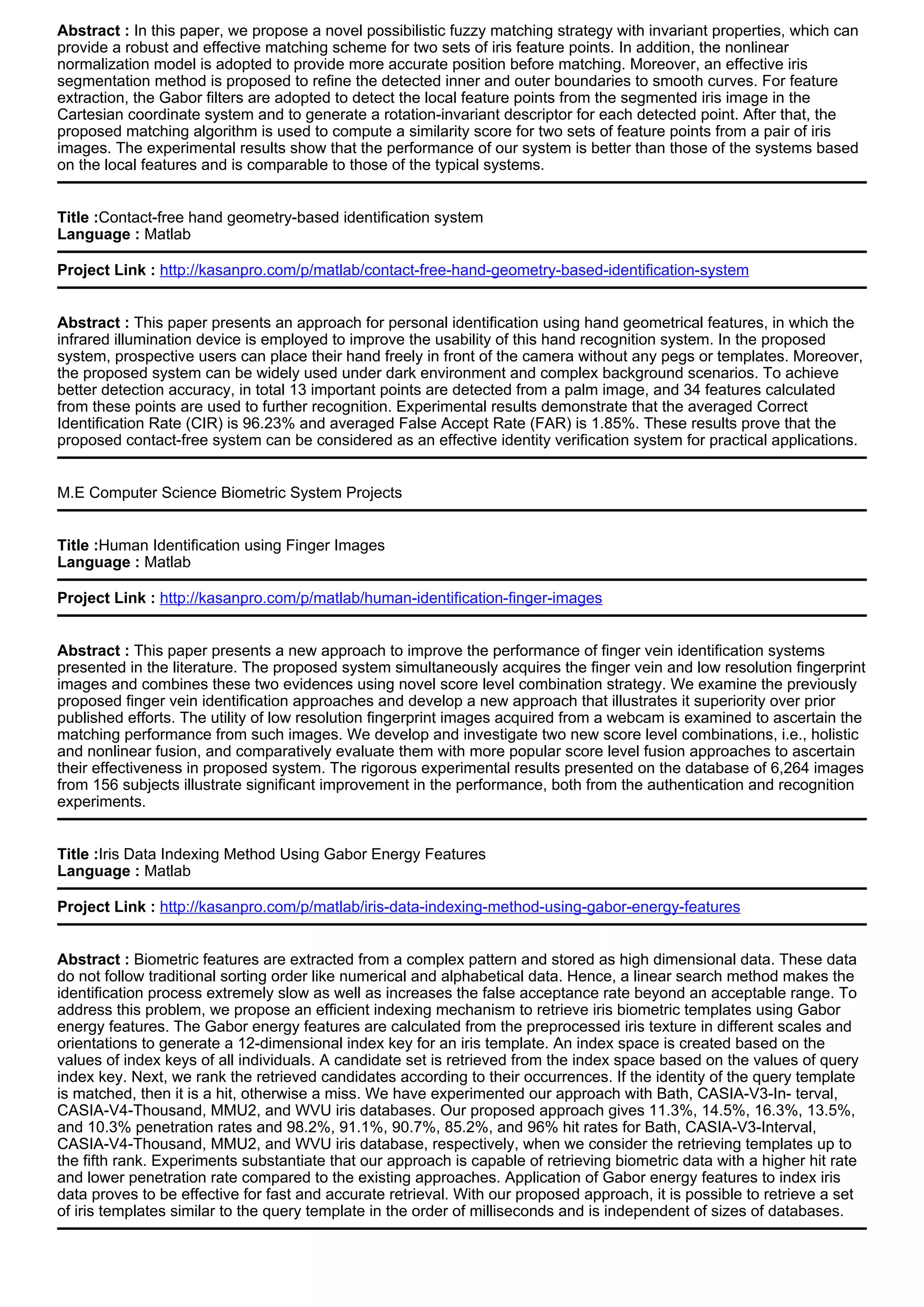 List Link : http://kasanpro.com/projects-list/m-e-computer-science-biometric-system-projects