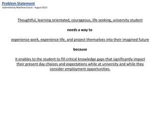 The document discusses a recent university graduate's experiences and reflections. It summarizes: