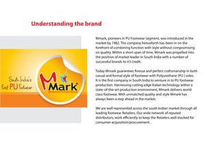 Mmark is a leading footwear brand in South India known for combining style and quality. However, its online presence is weak with few social media followers and an outdated website. Di Mark proposes a multi-phase digital marketing strategy to improve Mmark's online positioning and sales. The first phase focuses on optimizing Mmark's website and increasing its social media presence. Subsequent phases expand its online campaigns and integrate customer relationship management. Di Mark offers full service digital marketing solutions to help Mmark compete effectively online.