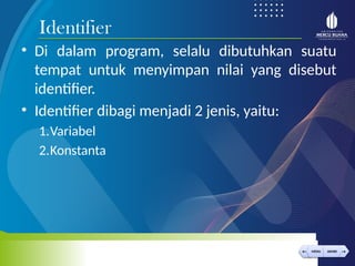 • Identifier dibagi menjadi 2 jenis, yaitu:
