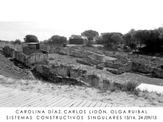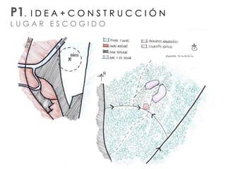 This document discusses the idea and construction of singular constructive systems. It includes sections on the chosen location, idea, perspectives of the exterior, uses and surfaces, general plant, perspectives of the interior, and construction and materialization. Diagrams and drawings are presented to illustrate the design of the system.