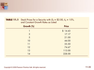 This chapter discusses investing in stocks and the stock market. It covers topics such as how stocks are traded on exchanges and over-the-counter markets, methods for valuing stocks like the dividend discount and Gordon growth models, how the market sets stock prices, sources of error in valuations, important stock market indexes, investing in foreign stocks, and regulation of the stock market by the SEC.